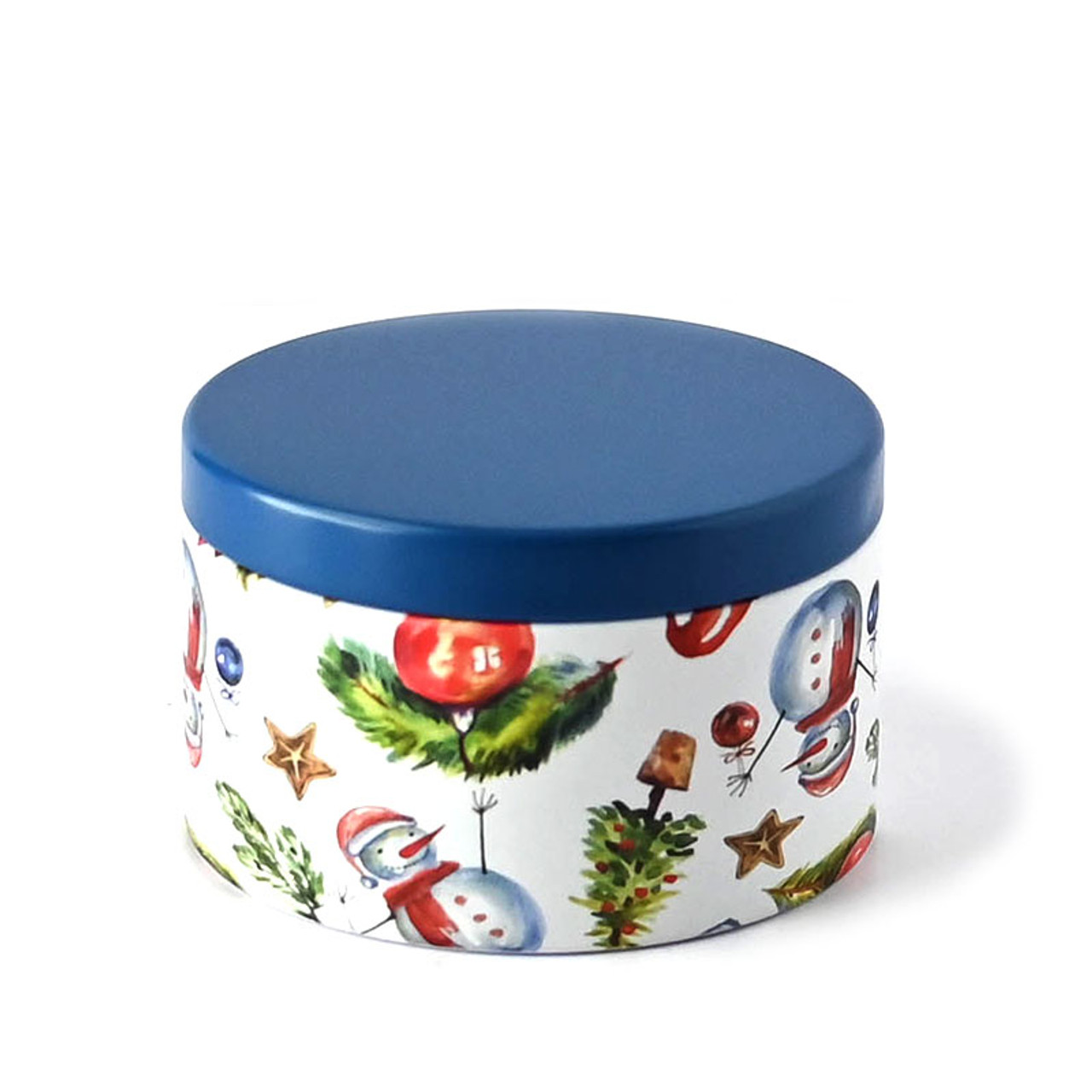 Celebrate the season with our 8 oz holiday decorated candle tins, featuring whimsical snowman designs! Each pack includes 12 beautifully adorned tins, complete with vibrant red, green, and blue lids that add a festive touch to any décor.