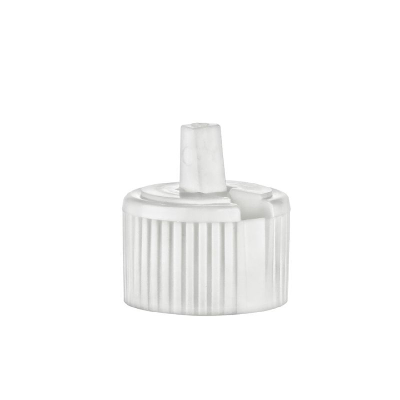 Jar Store's white 24-410 turret caps, also known as spout caps, are designed with flip-top nozzles for convenient dispensing. These caps release contents with a simple upward push and securely seal when leveled with the closure's top. Constructed from sturdy polypropylene, these black continuous thread caps feature a ribbed design for easy handling, guaranteeing effortless opening and closing. With a versatile 24-410 thread finish, they are compatible with a wide array of bottles.